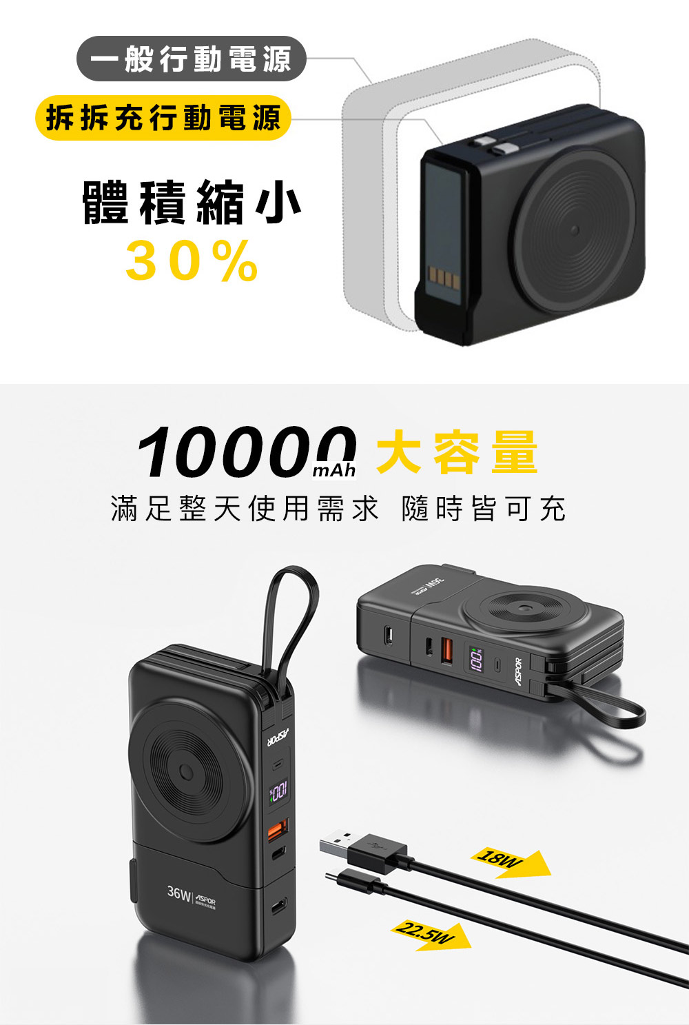 行動電源︱【ASPOR】22.5W 拆拆充行動電源 #A380