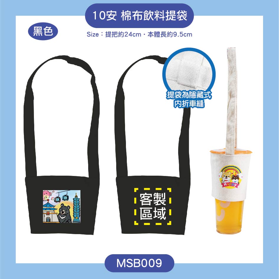 飲料提袋︱10安棉布飲料杯套 #黑色款
