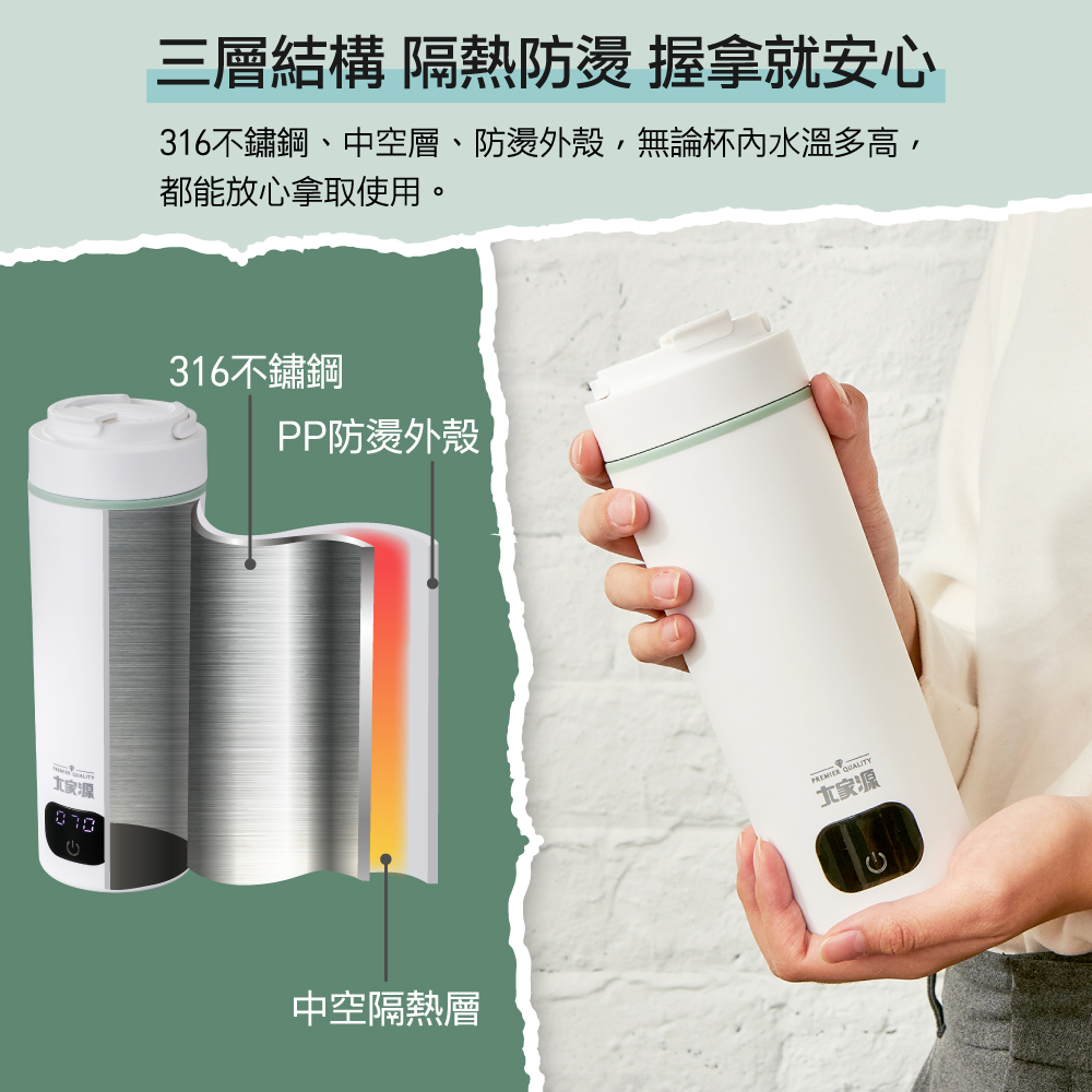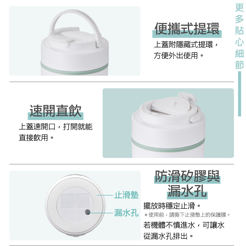 ◆ 便攜式提把設計,杯身小巧便攜。