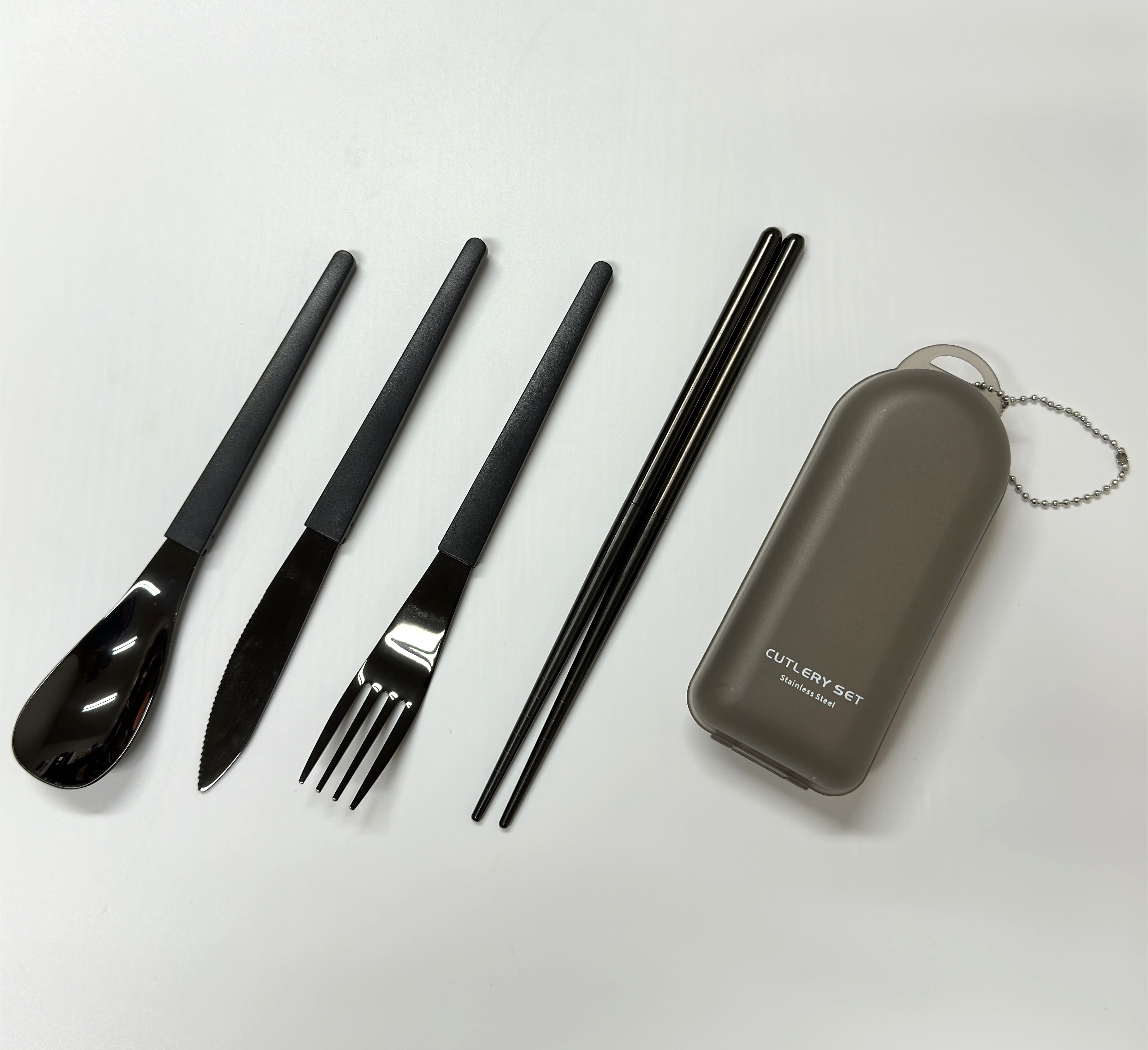 餐具︱雙截塑柄304匙叉刀筷盒組 #黑