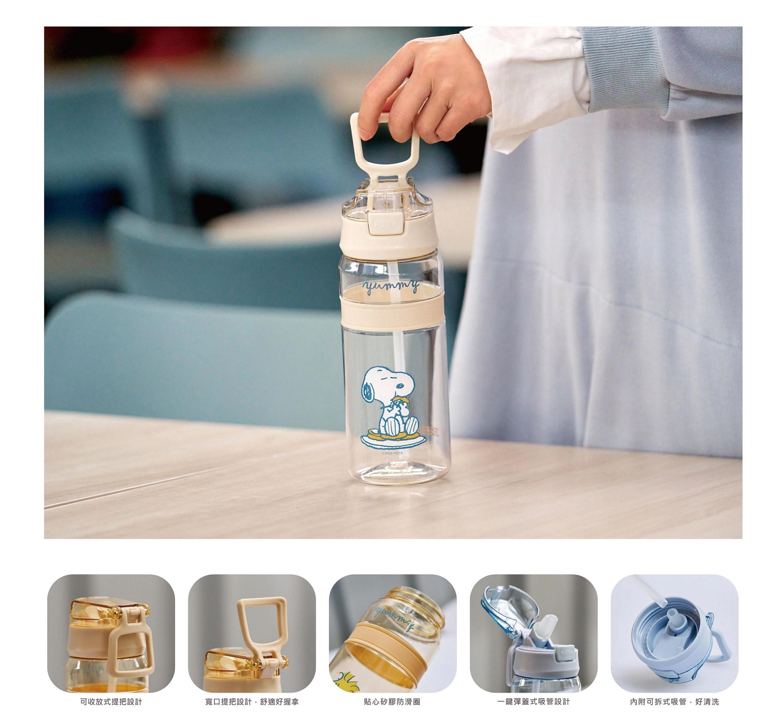 史努比︱餅乾輕巧手提水瓶 【IP授權 × 創意禮品,讓活動更有亮點】 - *此商品有 "最低訂購量",請備註「數量」將由專人接洽。 公司採購︱企業團體︱股東大會︱政府機關︱大宗採購︱活動贈品︱歡迎詢價。