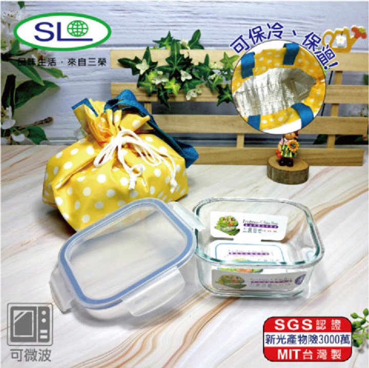 保鮮盒︱密扣式玻璃保鮮盒(方)+束口保溫提袋 #R200-1N