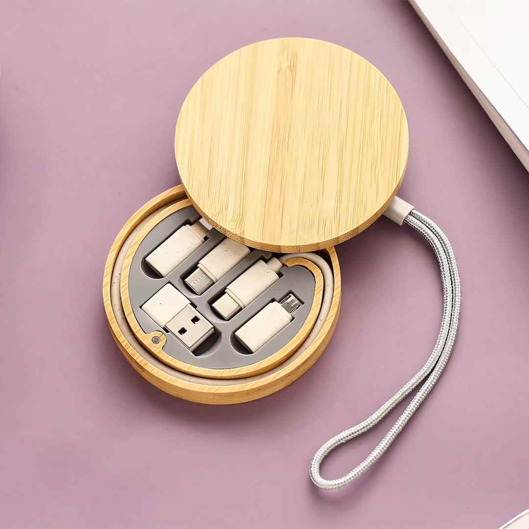 電子用品︱竹木圓形收納充電盒 #INQ-40