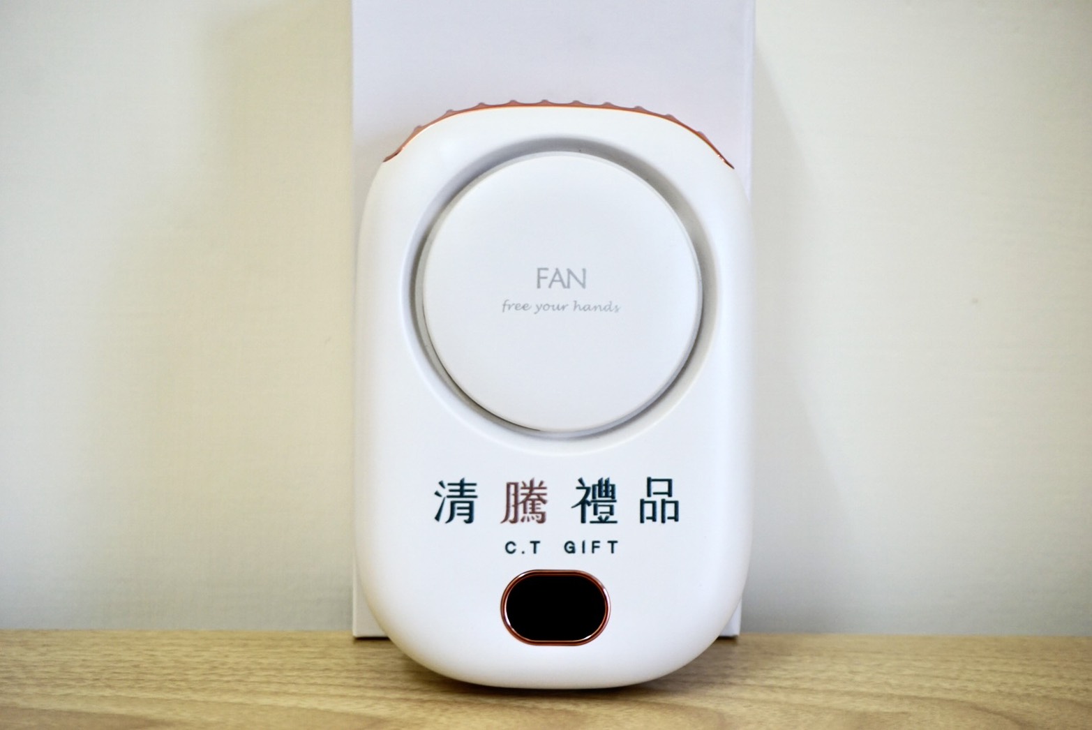 ▲繞線收納掛脖風扇 + LOGO水晶貼轉印